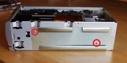 2) Remove these 8 screws on the back of the unit. Take both sides of the outer shell off.
