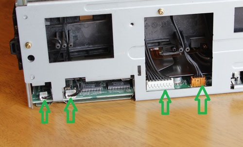 10) Disconnect these 4 cables (you may have already disconnected the 9-lead cable - that is the one that goes to the power supply).