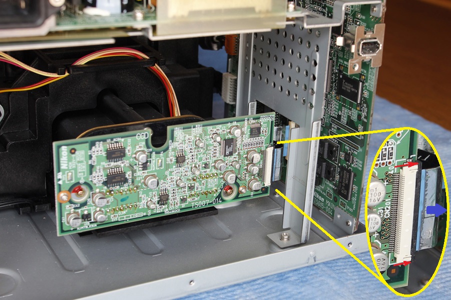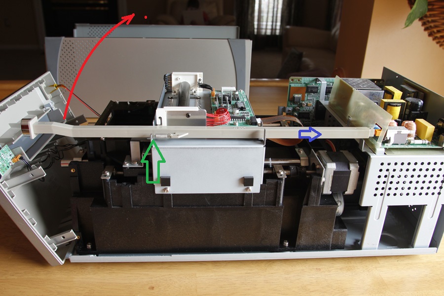 Nikon Super Coolscan LS-9000 disassembly procedure. 1) Remove film trays, power the scanner down, unplug the power & Firewire cables. Set the scanner on a clean surface.